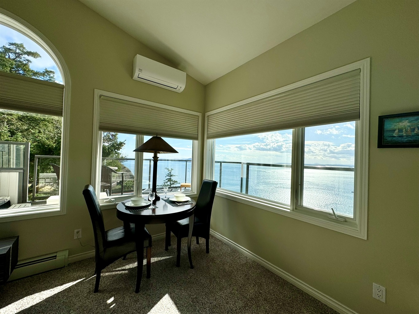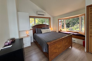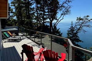 2 Bedrooms • 2 Bathrooms 2 Baths • Sleeps 2-7Enjoy a serene retreat at Sahhali on the Bluffs, Pender Island. This tranquil Cottage offers spectacular 180-degree views of the Salish Sea, facing south towards Vancouver Island, USA, Swartz Bay, and Salt Spring Island. Observe passing Orcas and Humpback whales, Bald eagles, Turkey vultures, and swallows in their natural habitat. Encounter local deer grazing nearby. Engage in hiking and cycling activities, followed by relaxation in your private hot tub while admiring the beautiful scenery in complete tranquillity. As an extension to the cottage, this configuration offers an additional East suite with the same view in the main building on the same property, providing a total capacity to house 7.