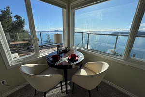 1 Bedroom • 1 Bathroom 1 Bath • Sleeps 1-2Welcome to East Suite Sahhali (heaven) on the Bluffs. Enjoy Spectacular views of the Salish Sea, the Olympic Mountains, Vancouver Island and the US to the south. Experience the wildlife with Bald Eagle soaring, Turkey vultures, Orcas, Humpbacks and resident deers. Enjoy Sunrise and sunset soaking in your personal Hottub on your private deck or bed.